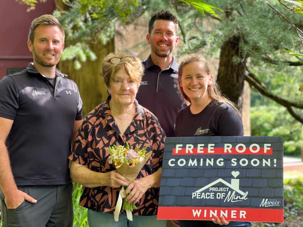 In 2013, we gifted our first roof to Beverly Oswald through the No Roof Left Behind program and have been giving away roofs ever since! What started as a partnership with a nationwide program, transformed into an in-house event in 2022, when Project Peace of Mind was born.